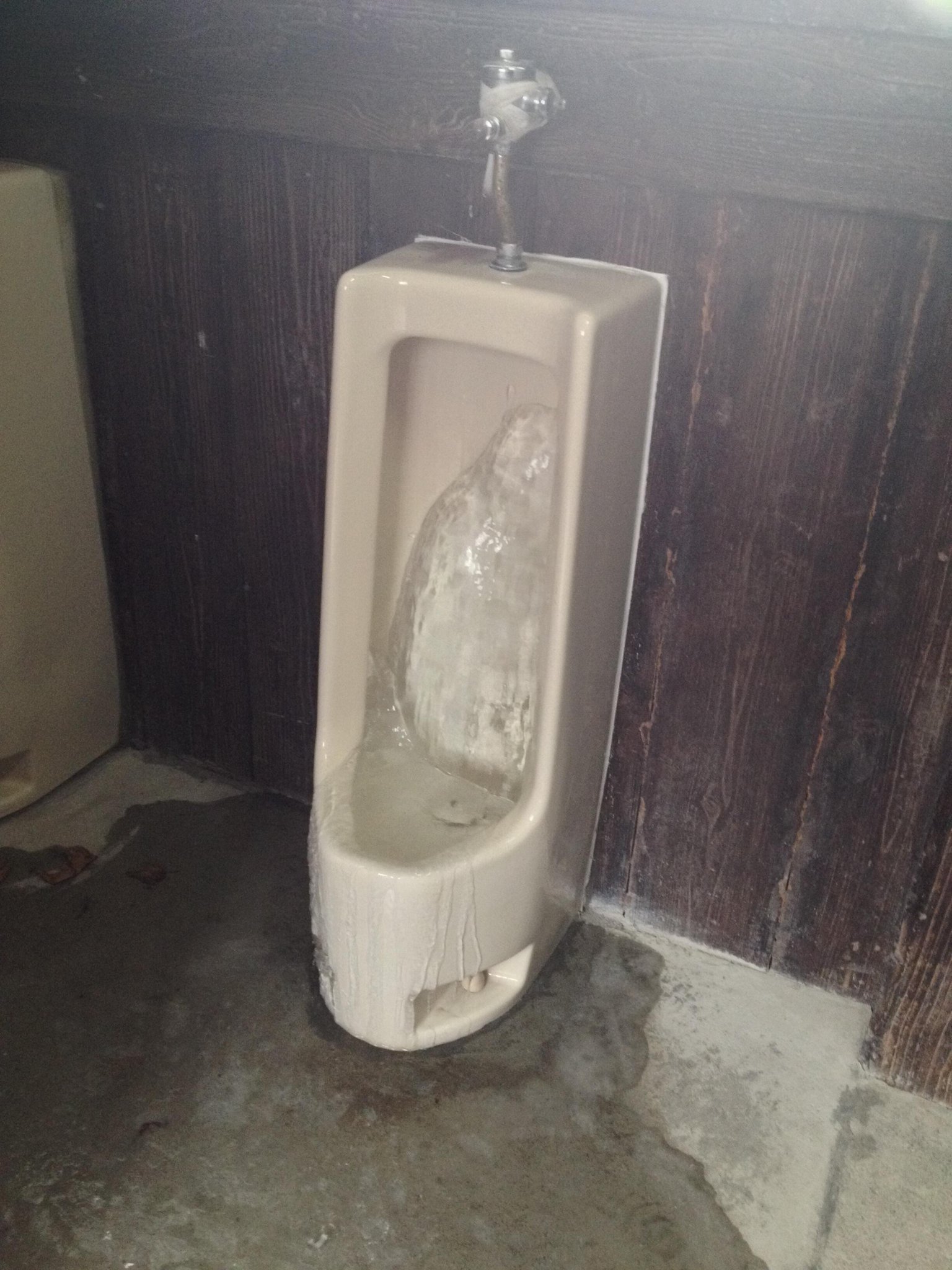 Konon pemakai wc selanjutnya biasanya akan menyalurkan air kencing ke arah es batu yang lebih tinggi untuk menyelaraskan ketinggian es batu tersebut.