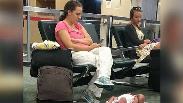 Foto seorang ibu yang asyik bermain ponsel saat bayinya berbaring di atas selimut di lantai, sementara di sampingnya wanita lain memandang mereka dengan tatapan tidak senang tersebut telah menyebar di media sosial sejak tahun lalu. Molly Lensing adalah sosok di dalam foto tersebut.