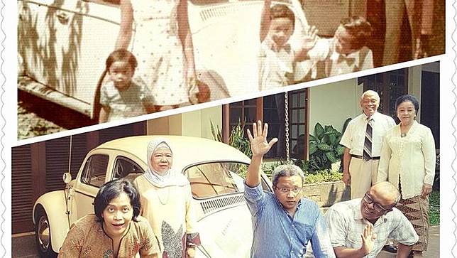 "Same 1962 Beetle… Same people… Alhamdulillah kami semua masih sehat, terutama Ibu dan Bapak…Photo tahun 1974 n 2017…," tulis Yoyok Waluyo dalam keterangan fotonya.
