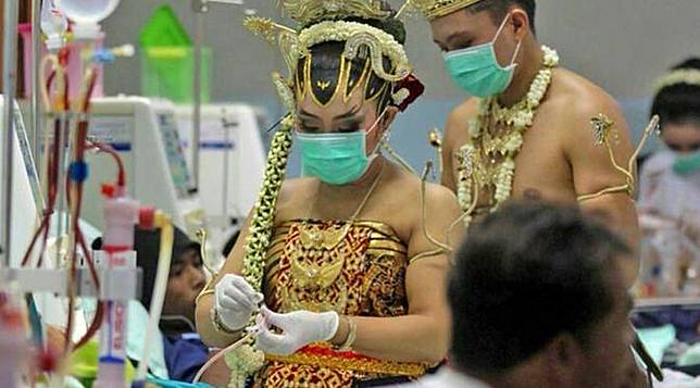 Pada November 2017, media sosial sempat dihebohkan dengan foto pria-wanita menggunakan pakaian pernikahan adat Jawa sedang merawat pasien. Sontak banyak pengguna media sosial kaget melihat foto tersebut. Foto yang diunggah akun Choriur Rozaq membuat warganet langsung heboh akan dedikasi mereka menjadi perawat.